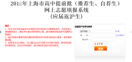 如考生首次登录本系统或忘记密码,应届生请与就读学校联系处理,应届返沪生可通过找回密码或与报考区中招办联系处理。