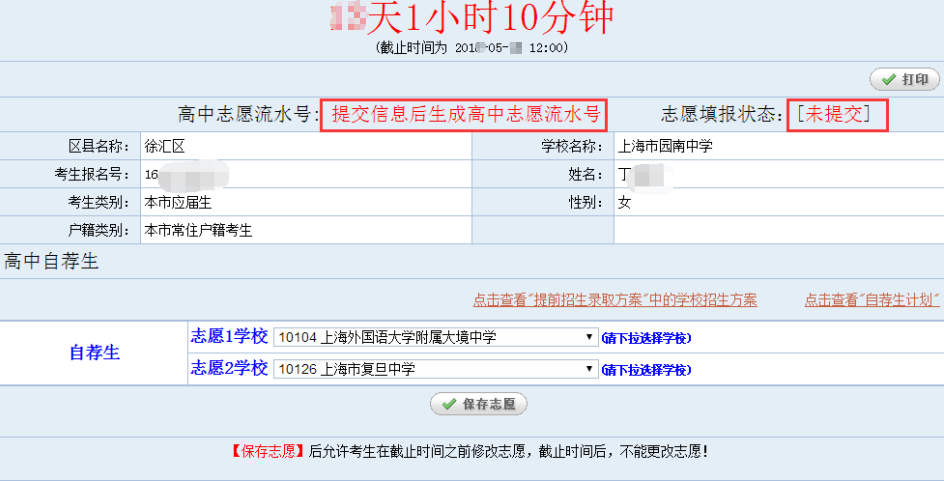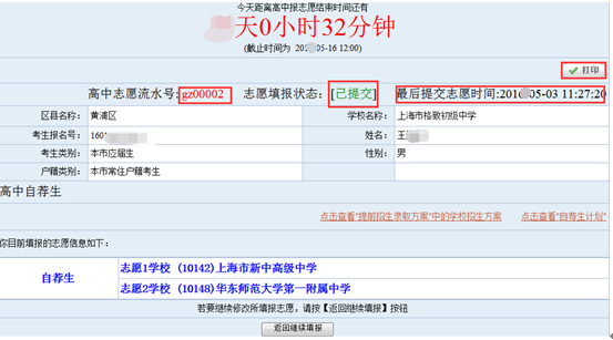 第六步:查看志愿、志愿流水号、保存和打印