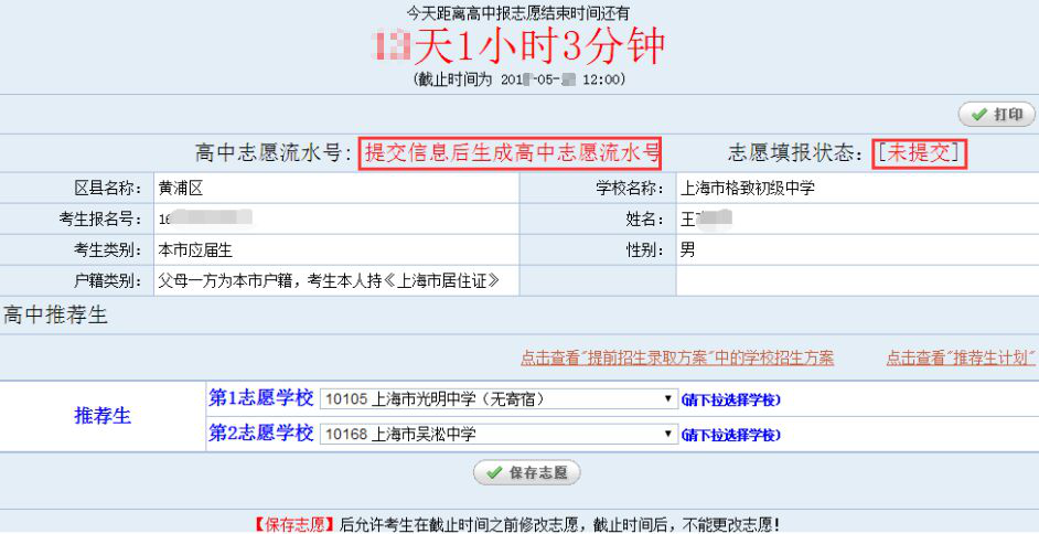 保存志愿成功后,系统将为每个考生生成一个高中志愿填报流水号,并且志愿填报状态为“已提交”,并记录最后一次提交保存的时间,请考生仔细牢记流水号,并检查保存的志愿是否准确无误。