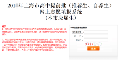 2018年上海市高中提前批(推荐生、自荐生)网上志愿填报系统