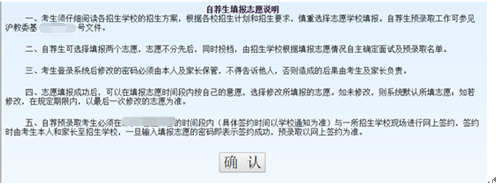在阅读完高中提前批网上志愿填报说明后,点击确认,将进入志愿填报页面,如下图: